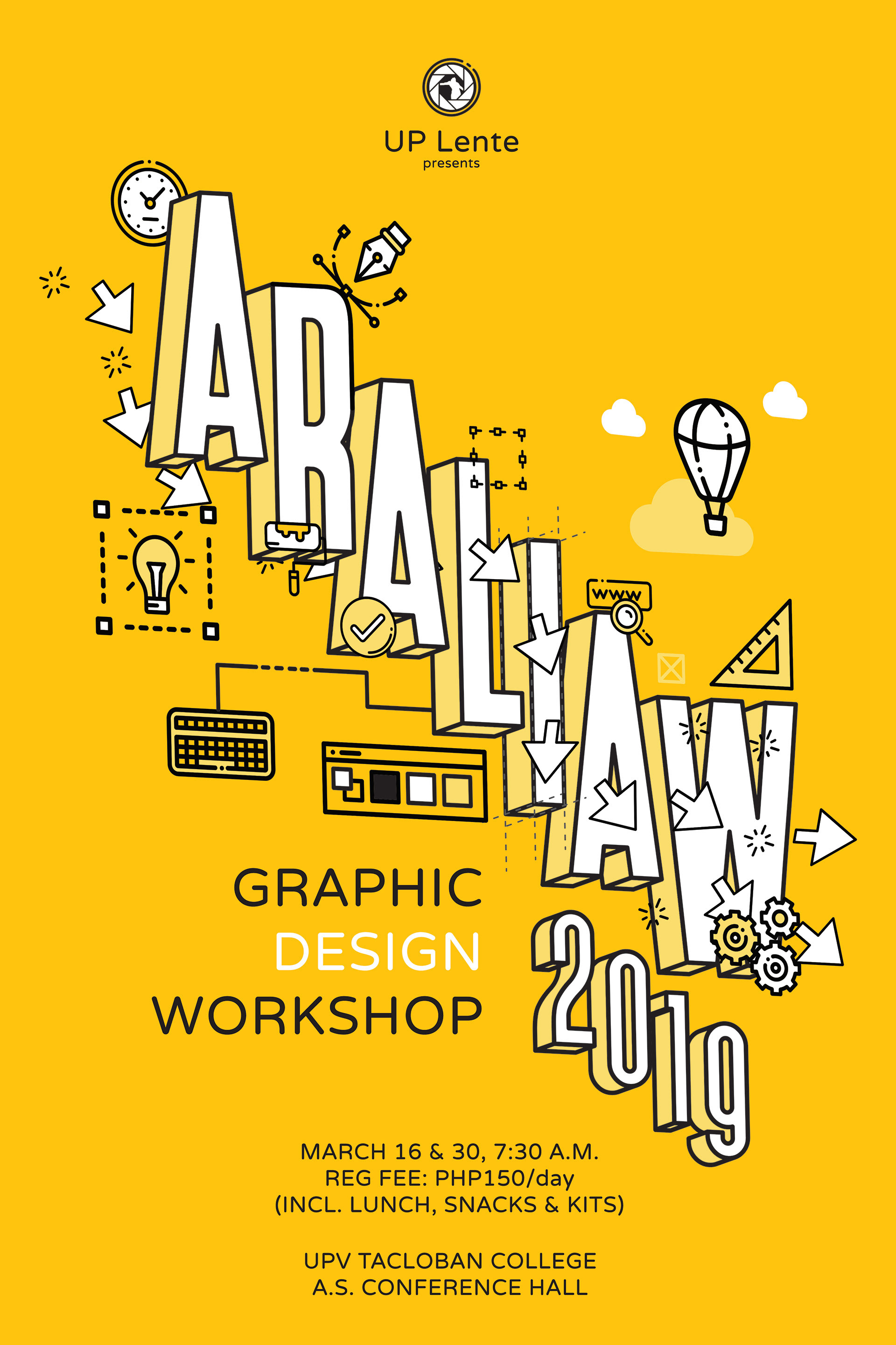 Publicity Materials for ARALIAW 2019, a graphic design workshop for aspiring designers in Tacloban City.