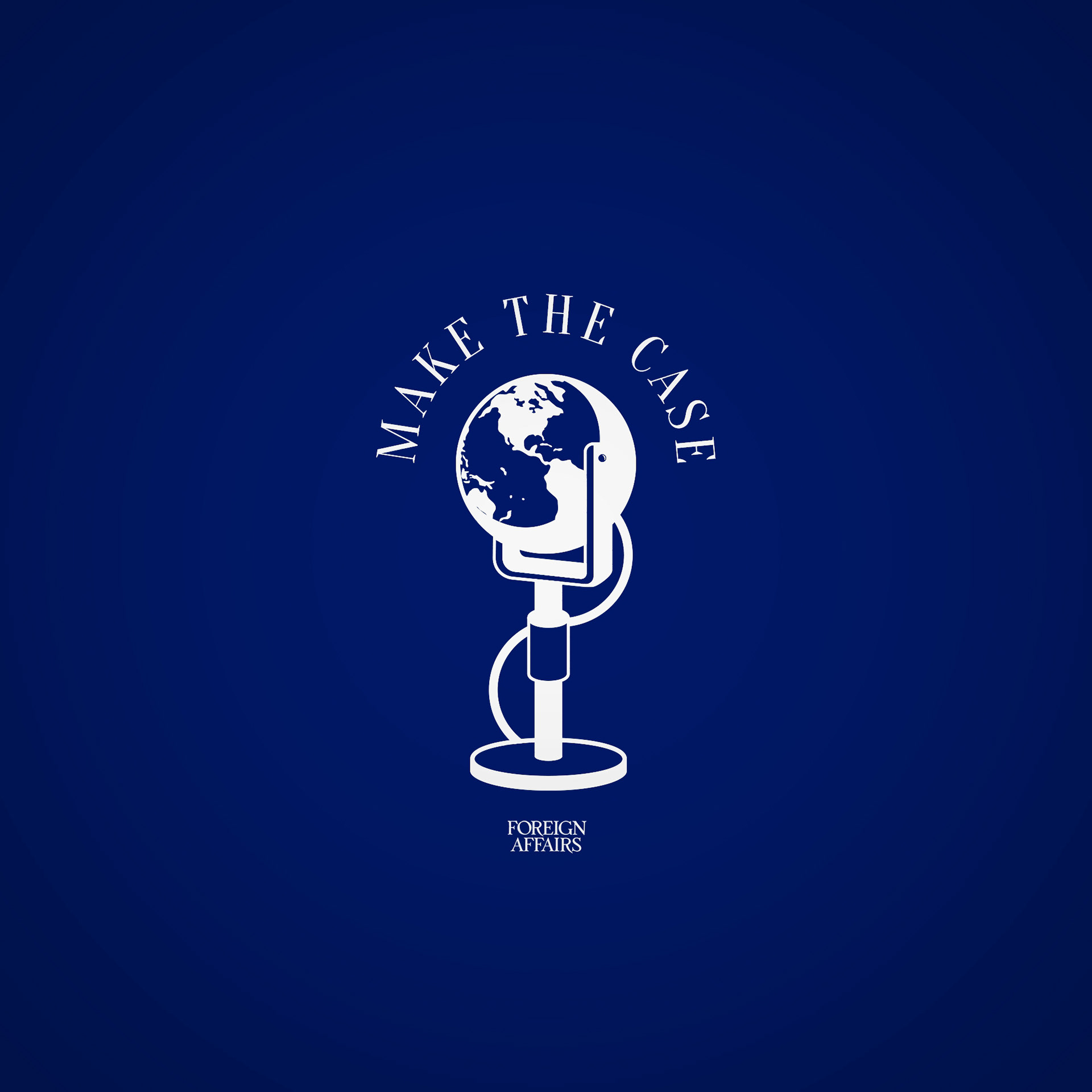 99designs contest entry for a podcast named "Make The Case." This foreign affairs podcast is hosted by an editor who invites scholars and experts to change his mind on a specific issue.
